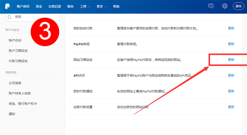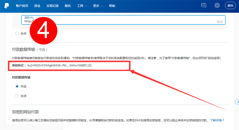 在外贸跨境电商网站中,我们需要用到paypal在线支付,然而在支付的代码开发当做,我们需要获得paypal账户的身份标记,以确保支付的安全性。如何找到paypal身份标记呢? 我们登陆后,点击账户设置,在左侧底部产品与服务栏目中找到网站付款,在网站习惯设定右侧点击更新,然后找到传输数据传输paypal身份标记。